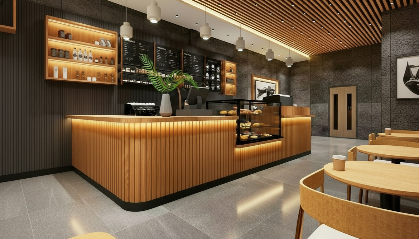 تصميم وتنفيذ تجهيزات المطاعم والمحلات التجارية بما يتناسب مع الهوية التجارية.